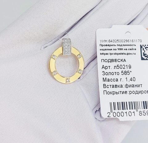 л50219 - Подвеска круглая из желтого золота 585 пробы с фианитами