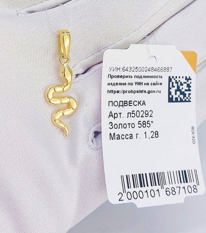 Л50292- Подвеска ЗМЕЯ из лимонного золота 585 пробы