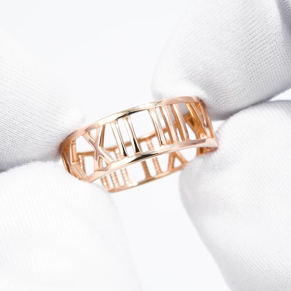019361- Кольцо из золота 585 пробы с римскими цифрами на шинке