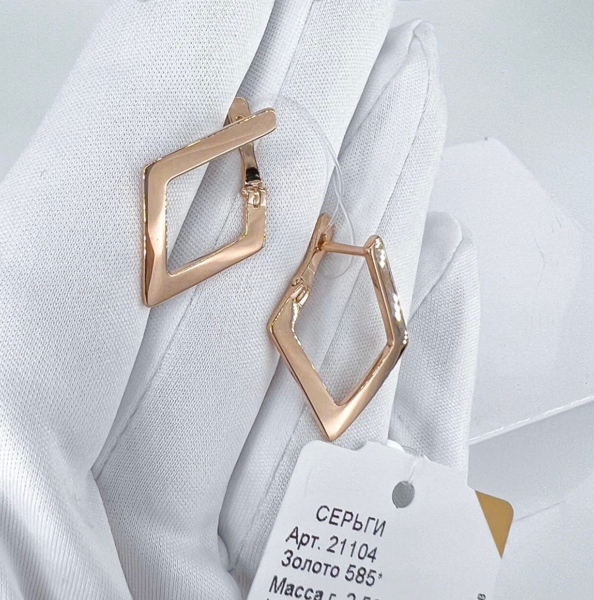 21104- Стильные, базовые серьги в форме прямоугольников из золота 585 пробы без вставок