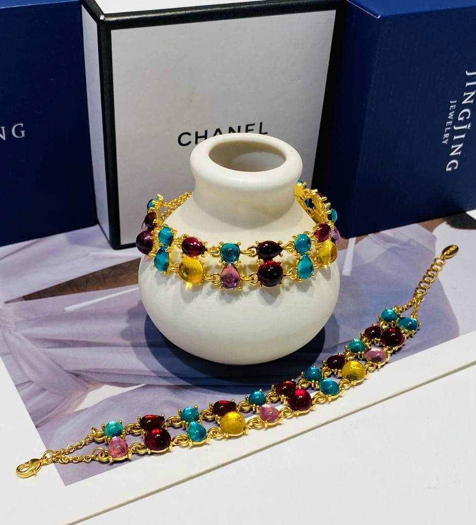 35044- Двойной браслет цепочка CARAMEL с цветными камнями