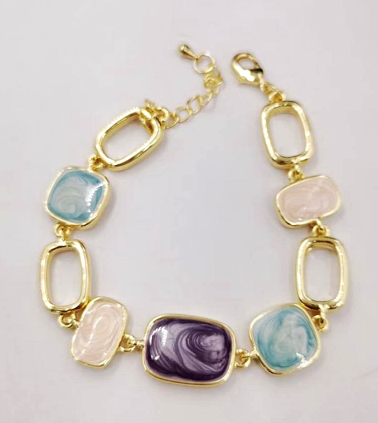 35220- Браслет цепочка МОНПАСЬЕ с цветными камнями в лимонной позолоте