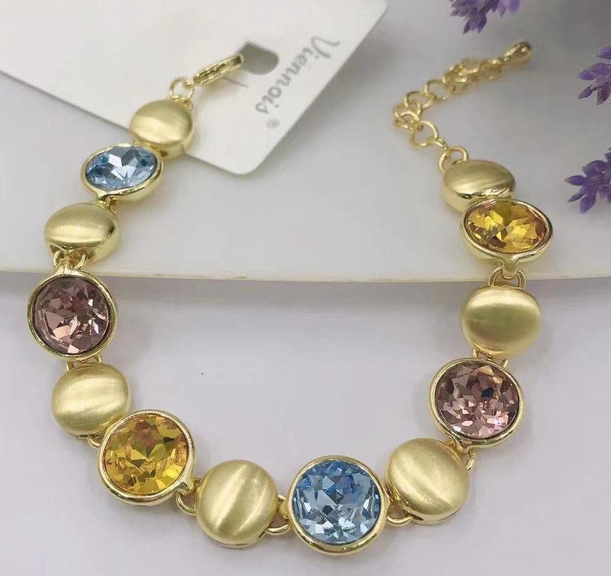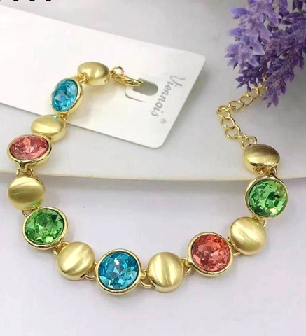 35224- Браслет цепочка МОНПАСЬЕ-4 с цветными камнями в лимонной позолоте