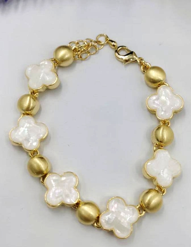 35228 - Браслет цепочка МОНПАСЬЕ-7 со вставками клевер в лимонной позолоте