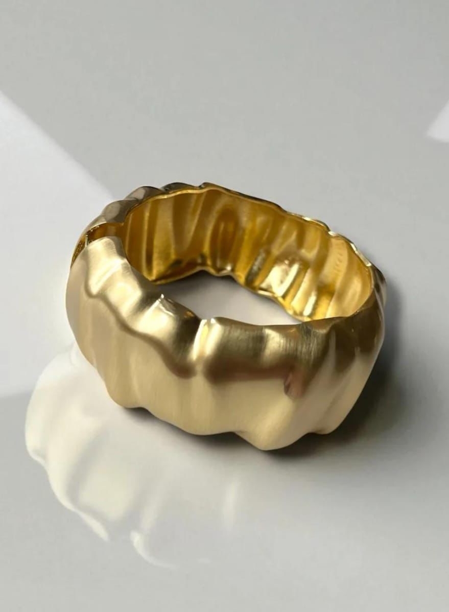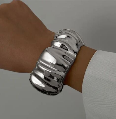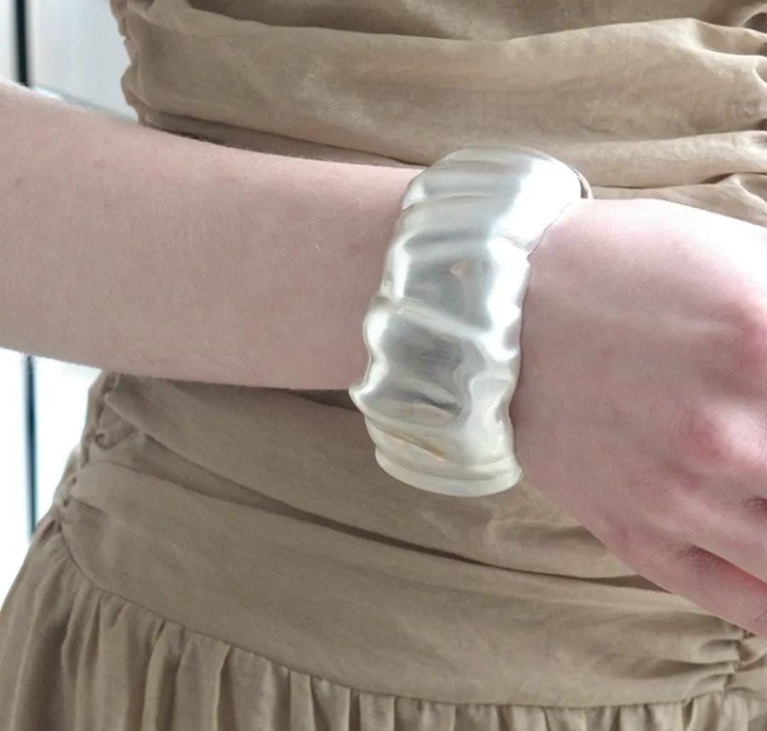 Стильный браслет широкий с эффектом мятого металла лимонная позолота/серебро