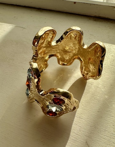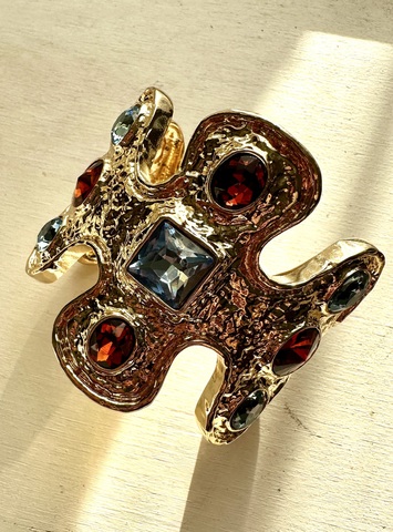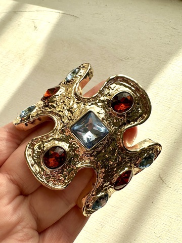 46065- Широкий, крупный браслет манжета КРЕСТ с камнями черные/цветные/прозрачные