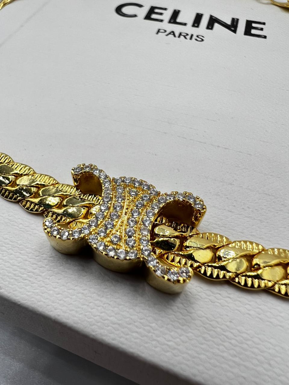 Браслет цепь CELINE с подвеской лого lux