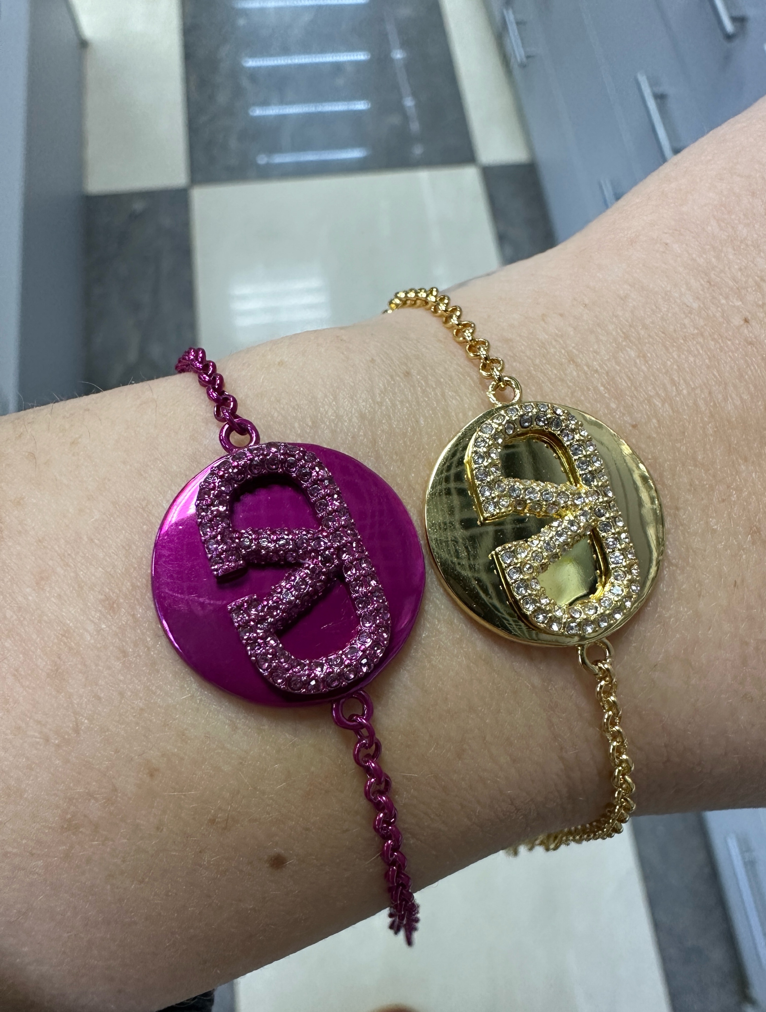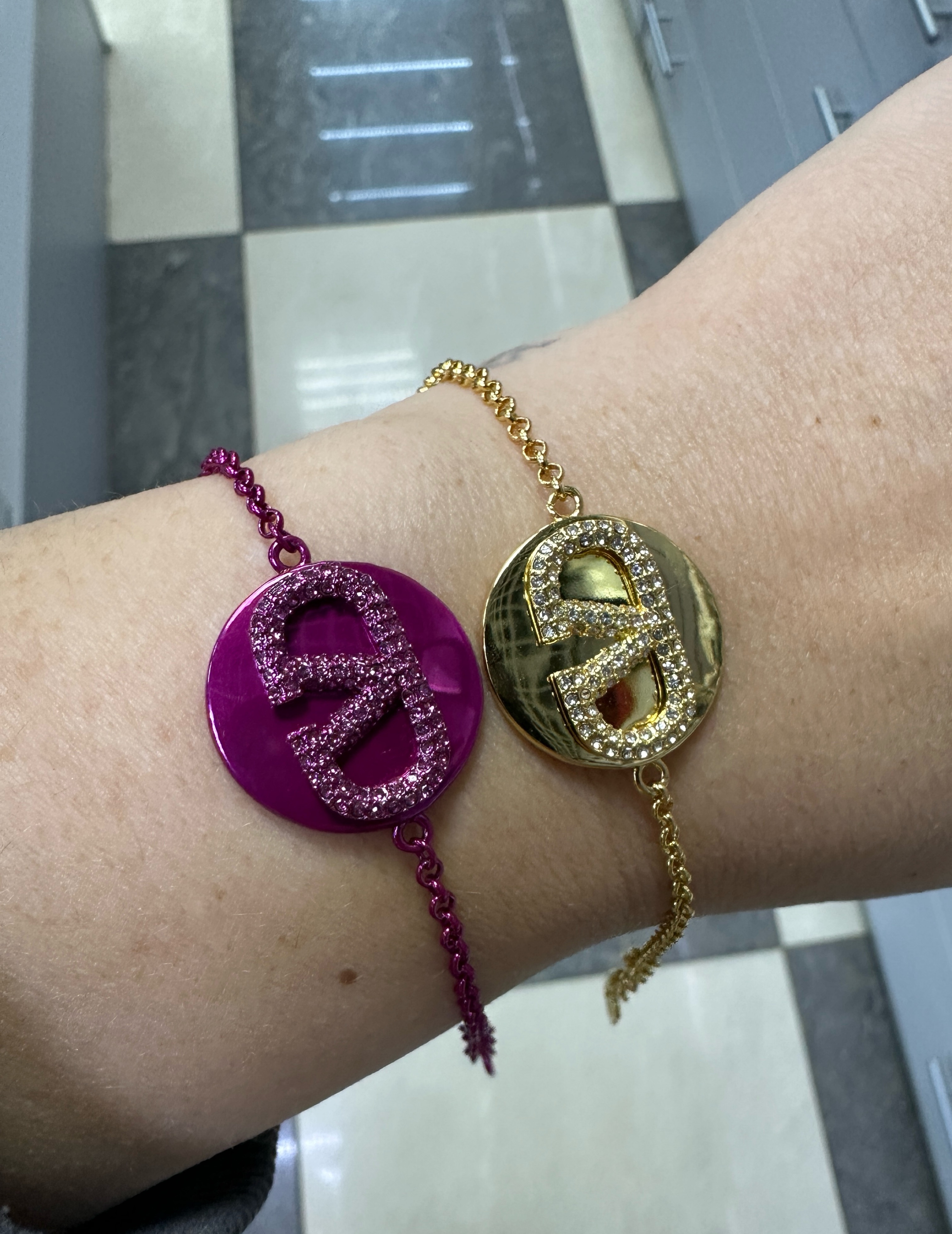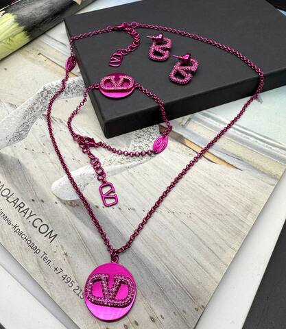 Браслет цепочка VALENTINO в розовом родаже (фуксия) с круглой подвеской