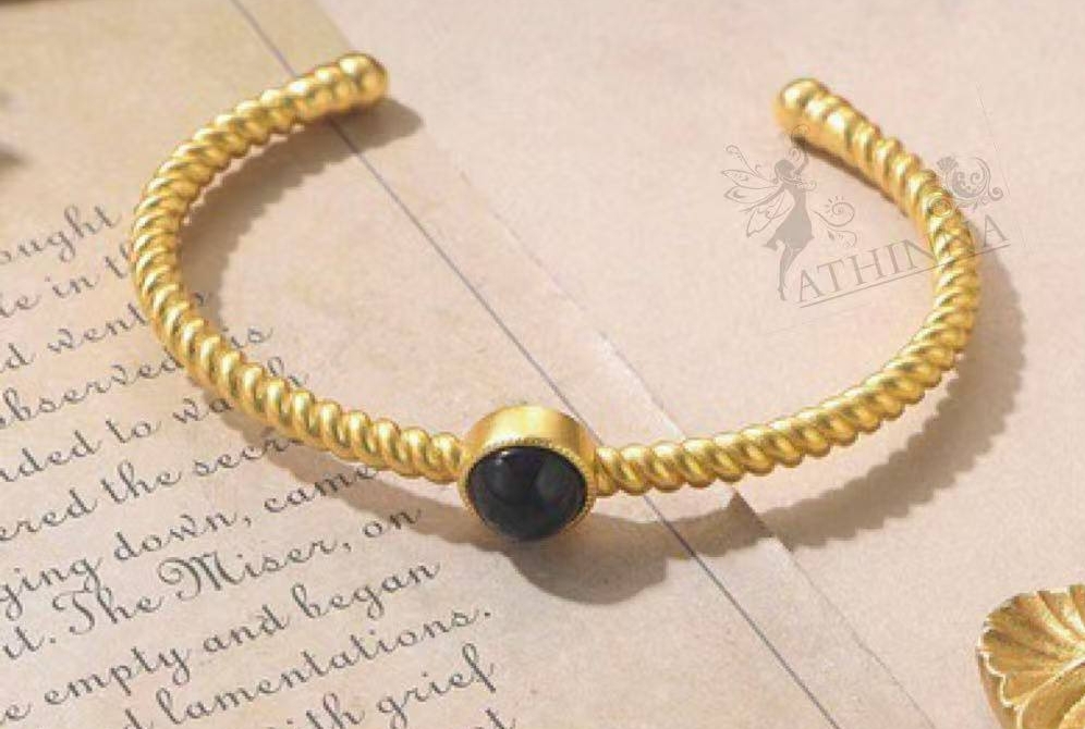 Браслет жесткий TEONA в позолоте с цветной вставкой в стиле Давид Юрман