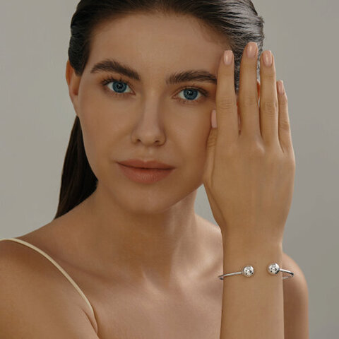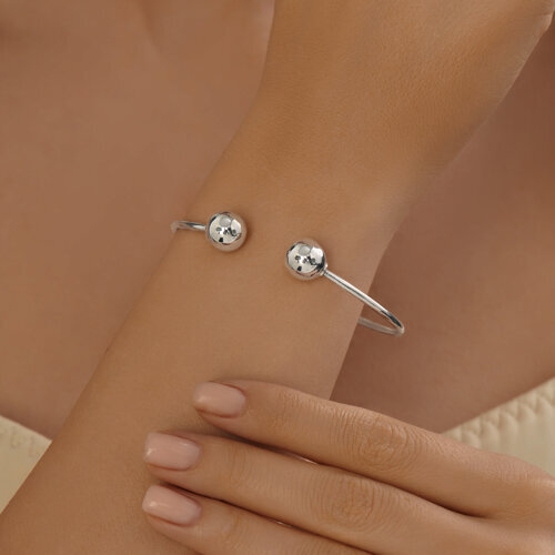 94050847- Браслет жесткий из серебра с круглыми наконечниками