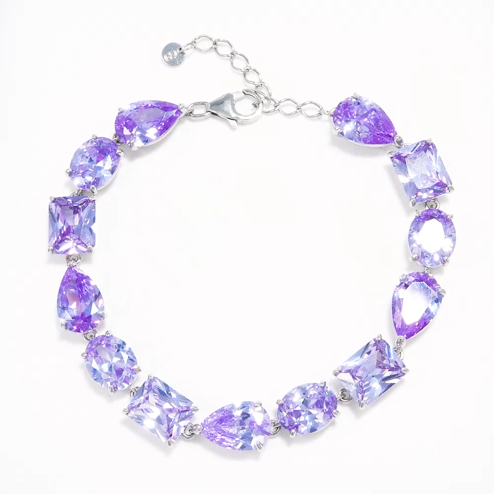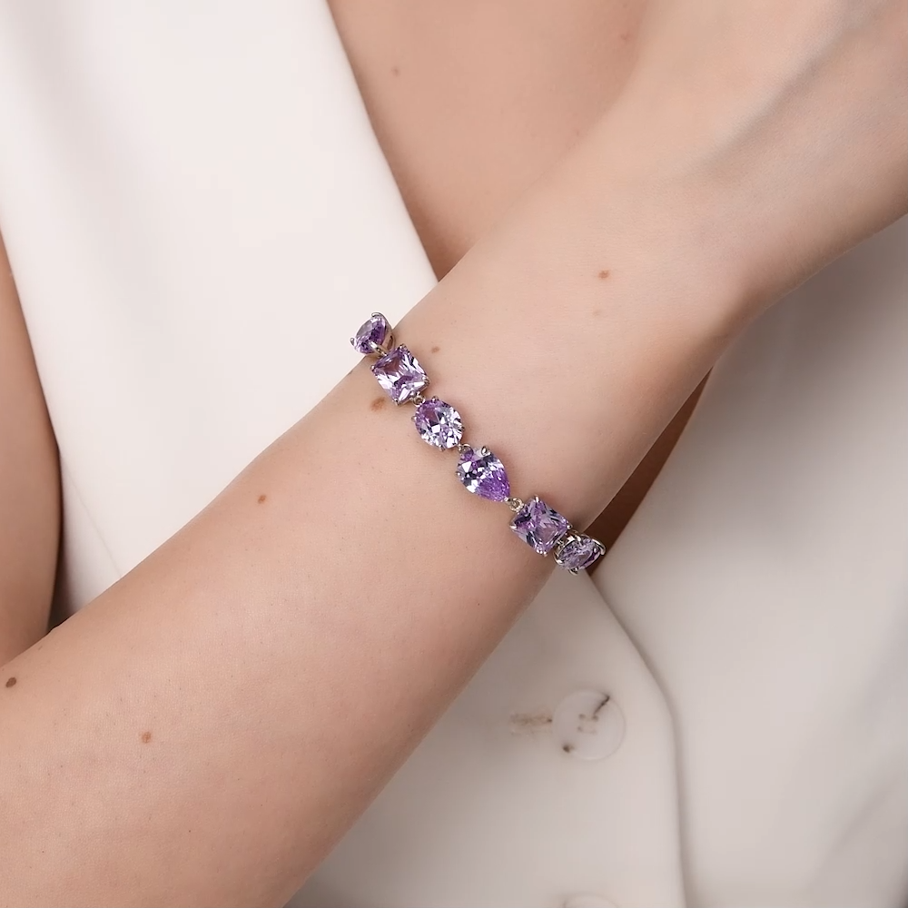 Браслет-дорожка теннисный из серебра с аметистовыми фианитами