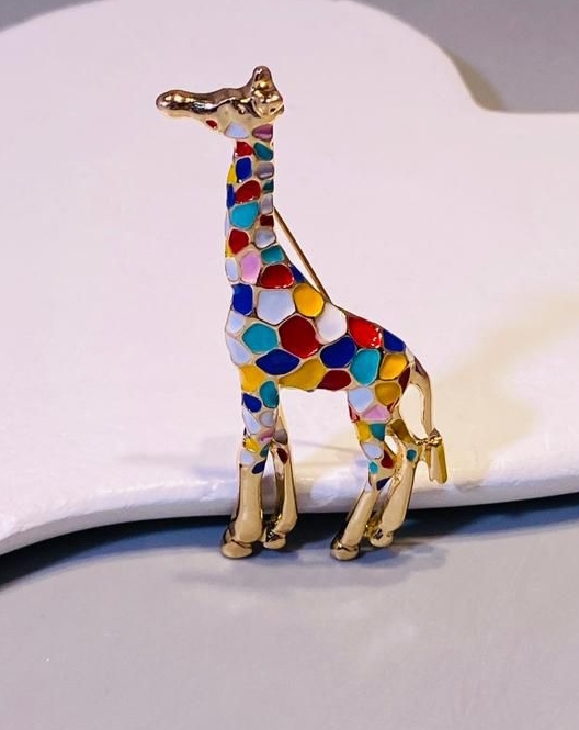 Б071 - Брошь ЖИРАФ с витражной разноцветной эмалью