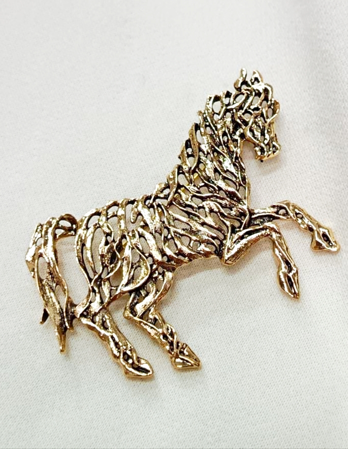 Б072 - Брошь ЛОШАДЬ символ 2026 года без вставок