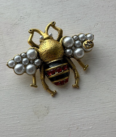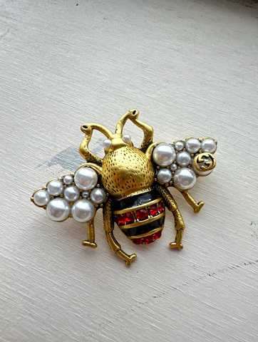 Стильная брошь с микрожемчугом в форме МУХи style by GUCCI