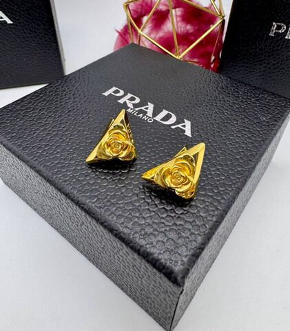 20255-Серьги- пусеты PRADA Розы на треугольнике лимонная позолота