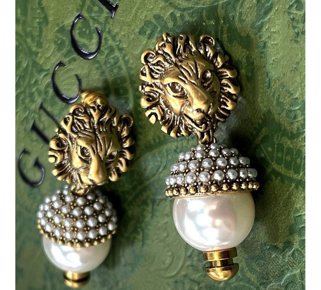 28414 - Серьги-пусеты львы GUCCI с подвесками (цвет бронза)