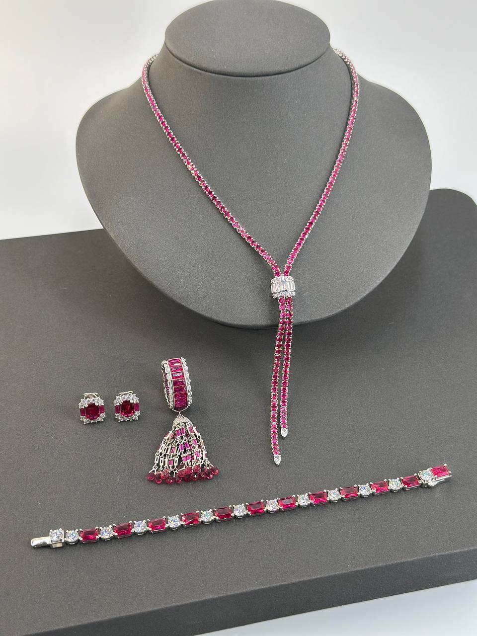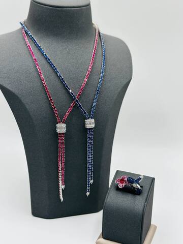 31308 - Колье-галстук теннисное из серебра 925 пробы с рубиновыми вставками