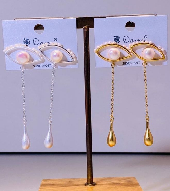 32118- Серьги ГЛАЗ с жемчугом и подвеской каплей