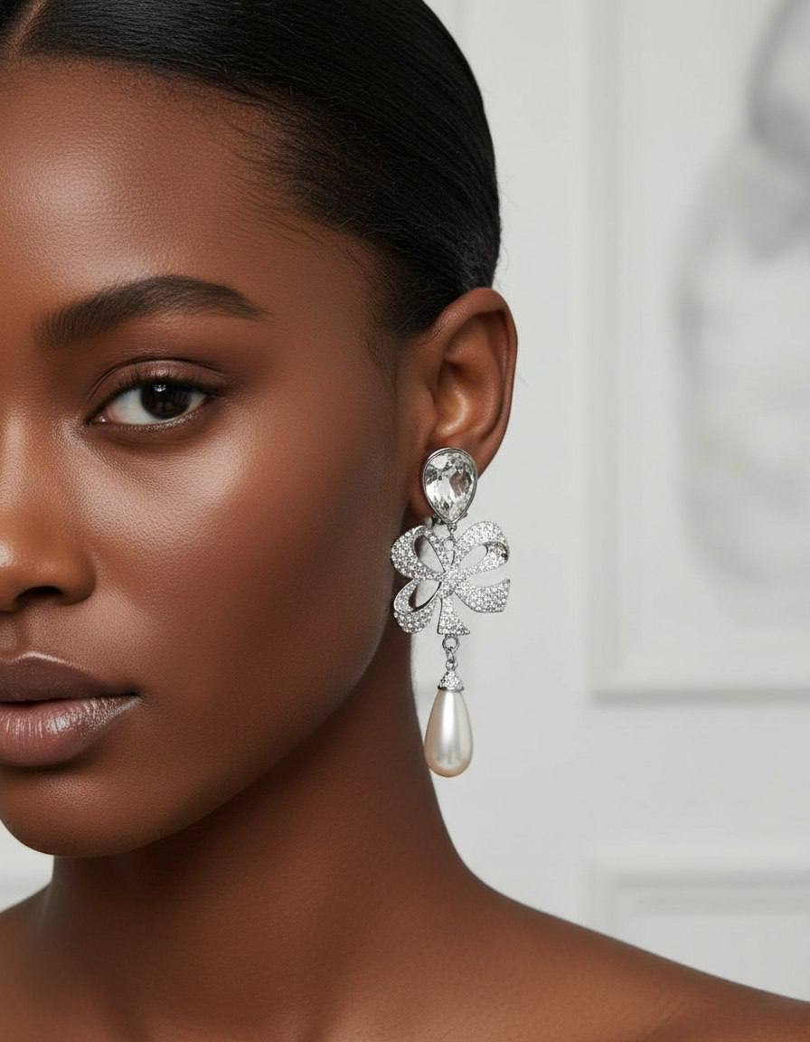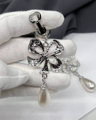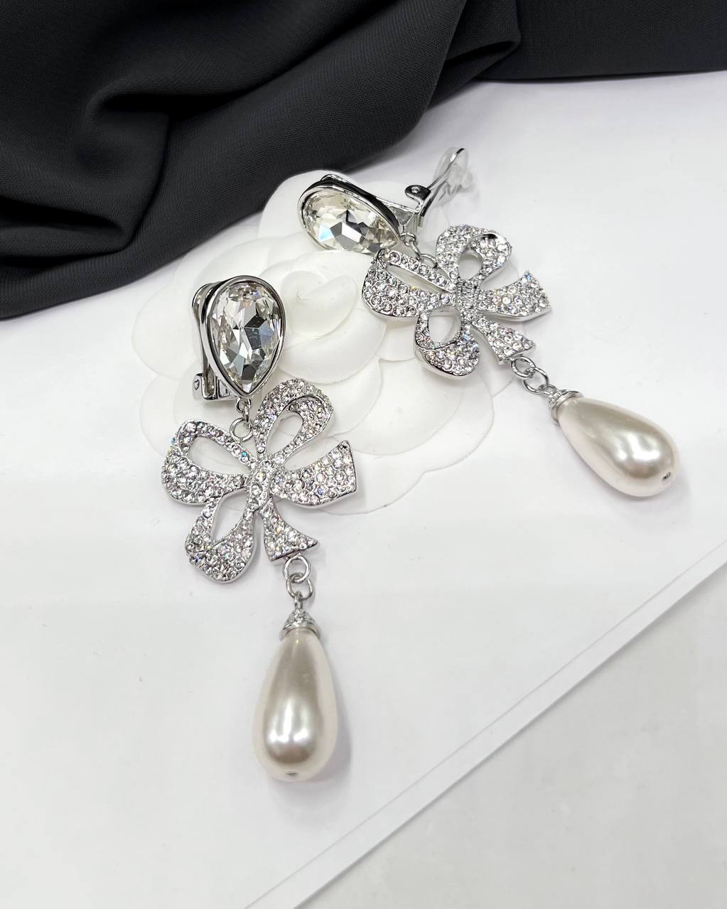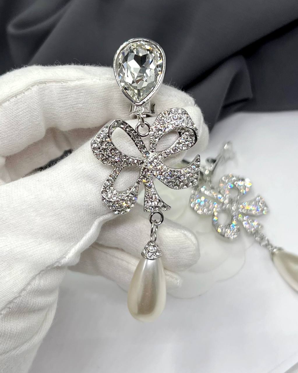 Серьги клипсы цветок с подвеской Alexandra Rich с кристаллами SWAROVSKI