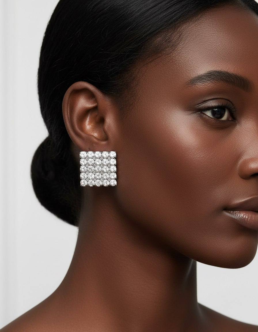 Серьги клипсы квадрат Alexandra Rich с кристаллами SWAROVSKI