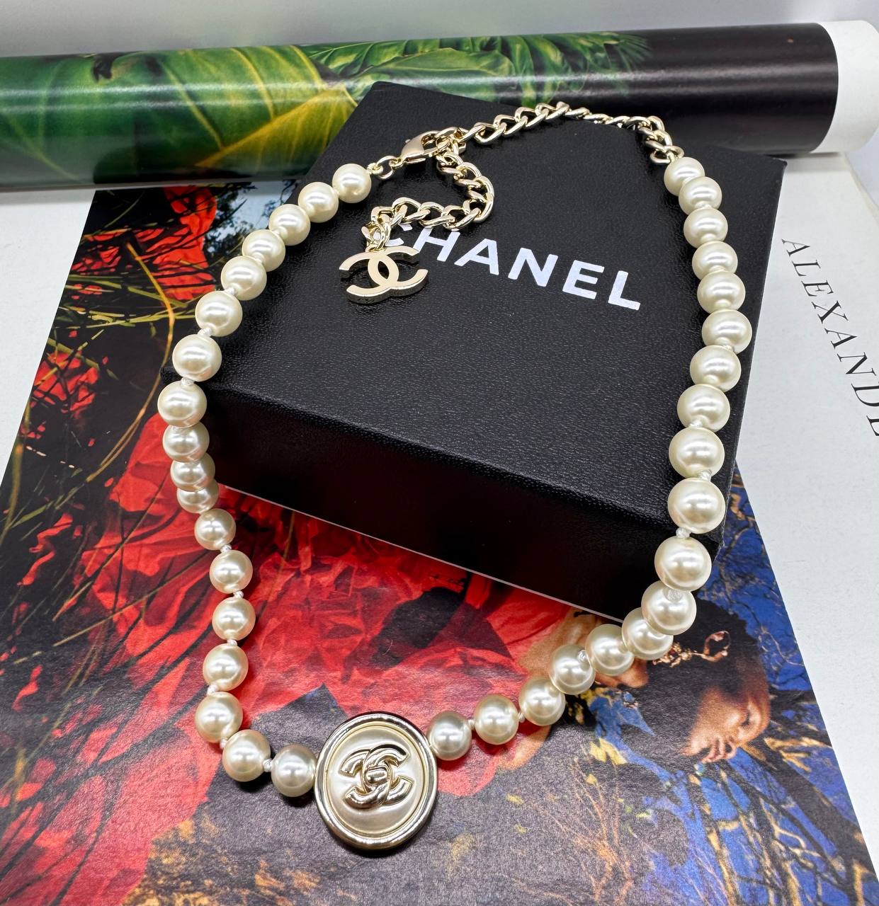 52316 - Колье-чокер из жемчуга CHANEL с круглой подвеской с эмалью