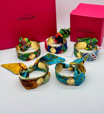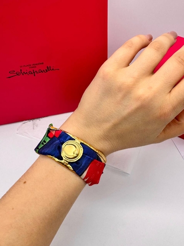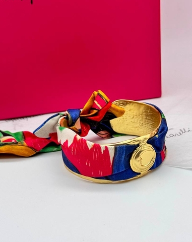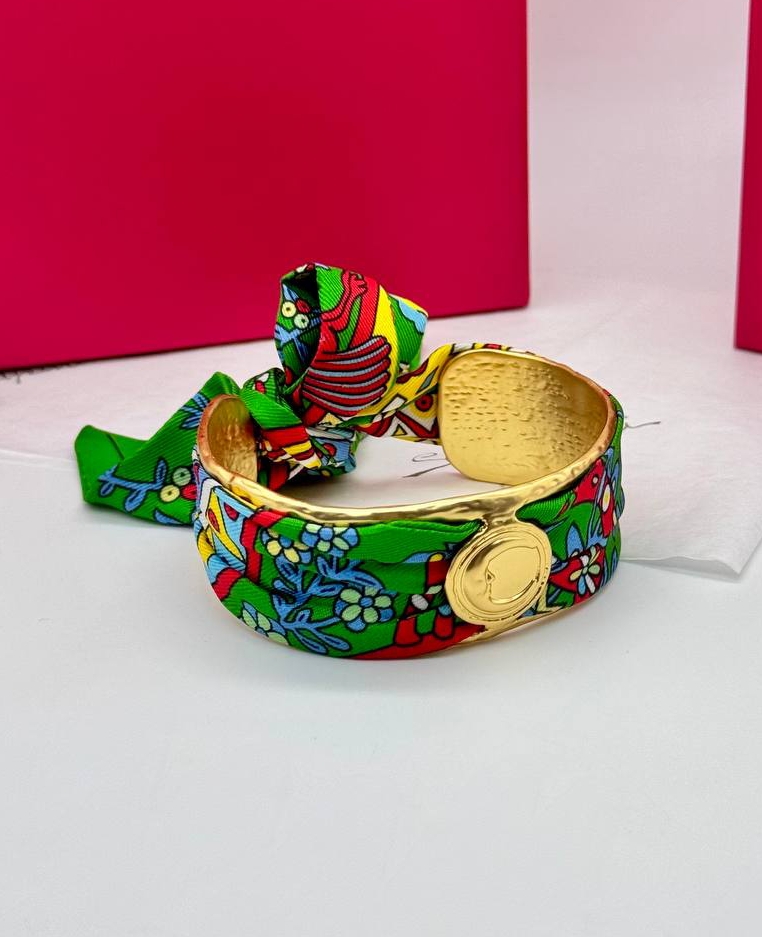 53344 - Браслет манжета широкий в стиле Schiaparelli с ленточкой твилли
