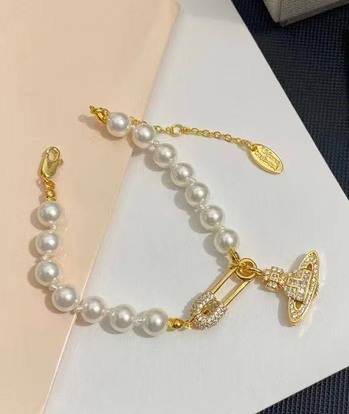 53522 - Браслет из жемчуга с подвеской лого в стиле WESTWOOD