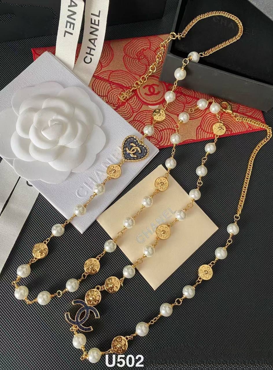 65137- Колье цепочка с вставками из жемчуга и логотипами CHANEL