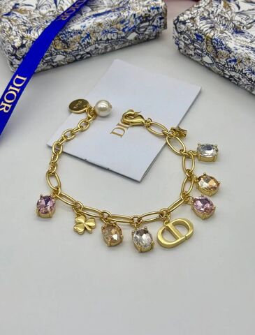 Браслет цепь с подвесками цветными камнями CDior коллекция LUCKY CHARM