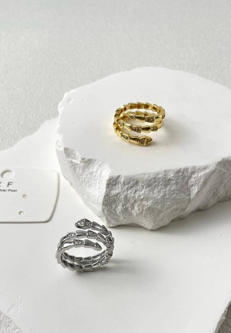 84781- Кольцо змея в стилистике Булгари белое/желтое золото