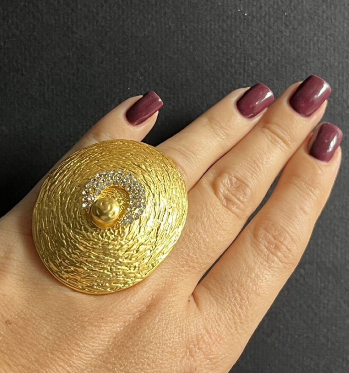 Акцентное крупное кольцо печатка в стиле Schiaparelli