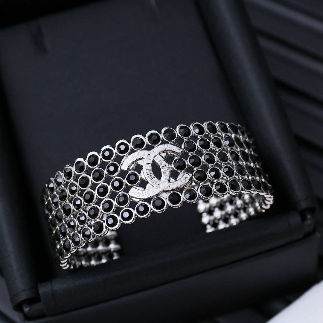 Браслет манжета с вставками из черных кристаллов CHANEL