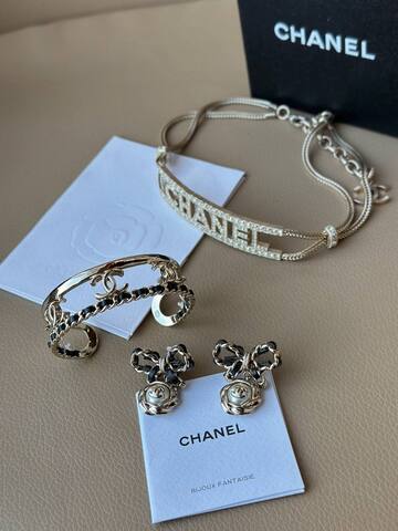 Браслет жесткий CHANEL цвет шампань с вставкой из кожи