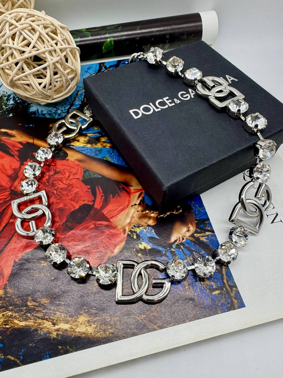 Колье-чокер DOLCE&G с кристаллами и подвесками лого