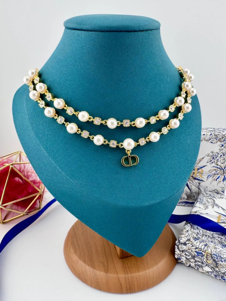 Колье чокер двухрядный из жемчуга с подвеской CDIOR