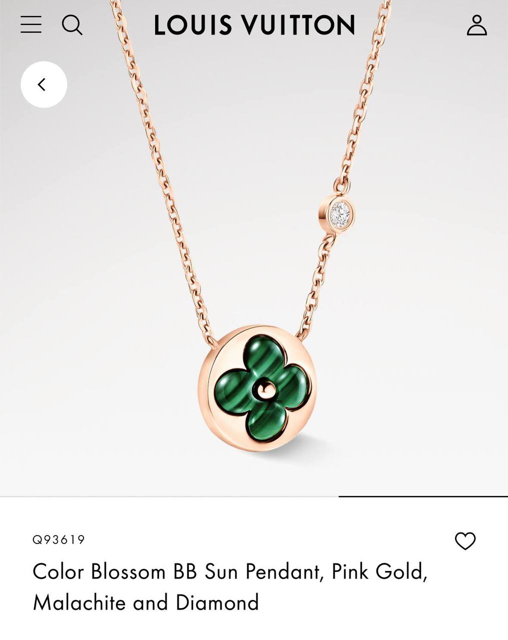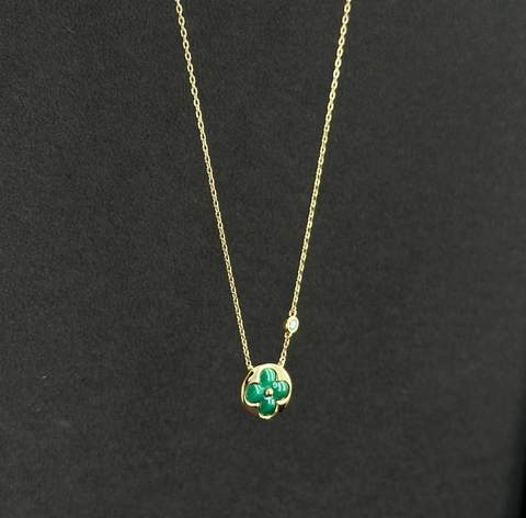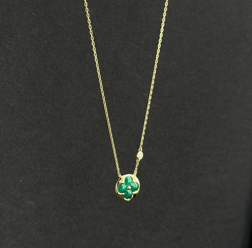 Колье LV с круглой подвеской малахит коллекция BLOSSOM rose VGOLD