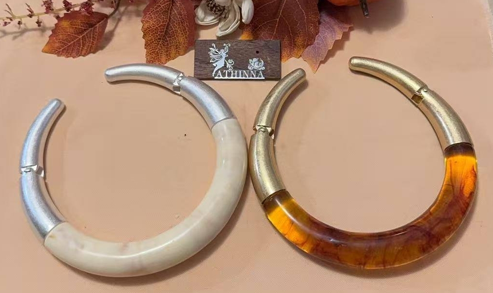 Колье обруч на шею жесткое со вставкой из акрила цвет золото/серебро