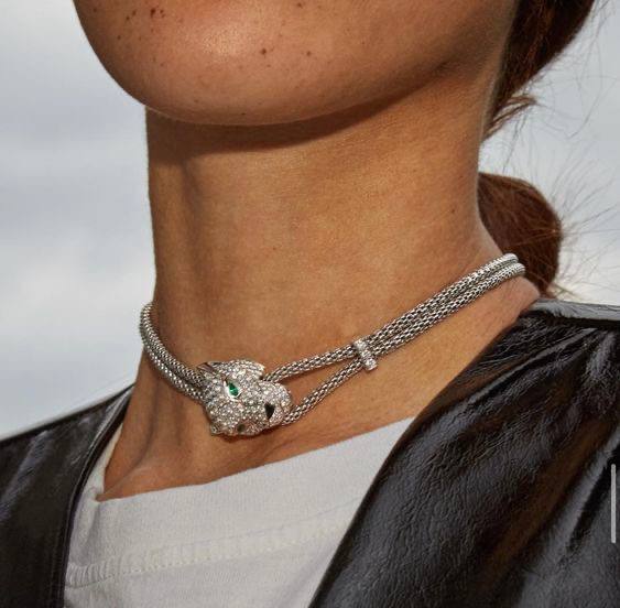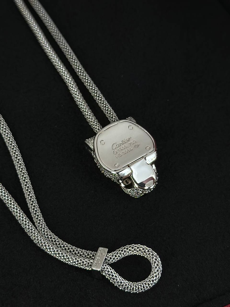 Колье с подвеской голова ПАНТЕРЫ в обсыпке коллекция PANTHERE white VGOLD