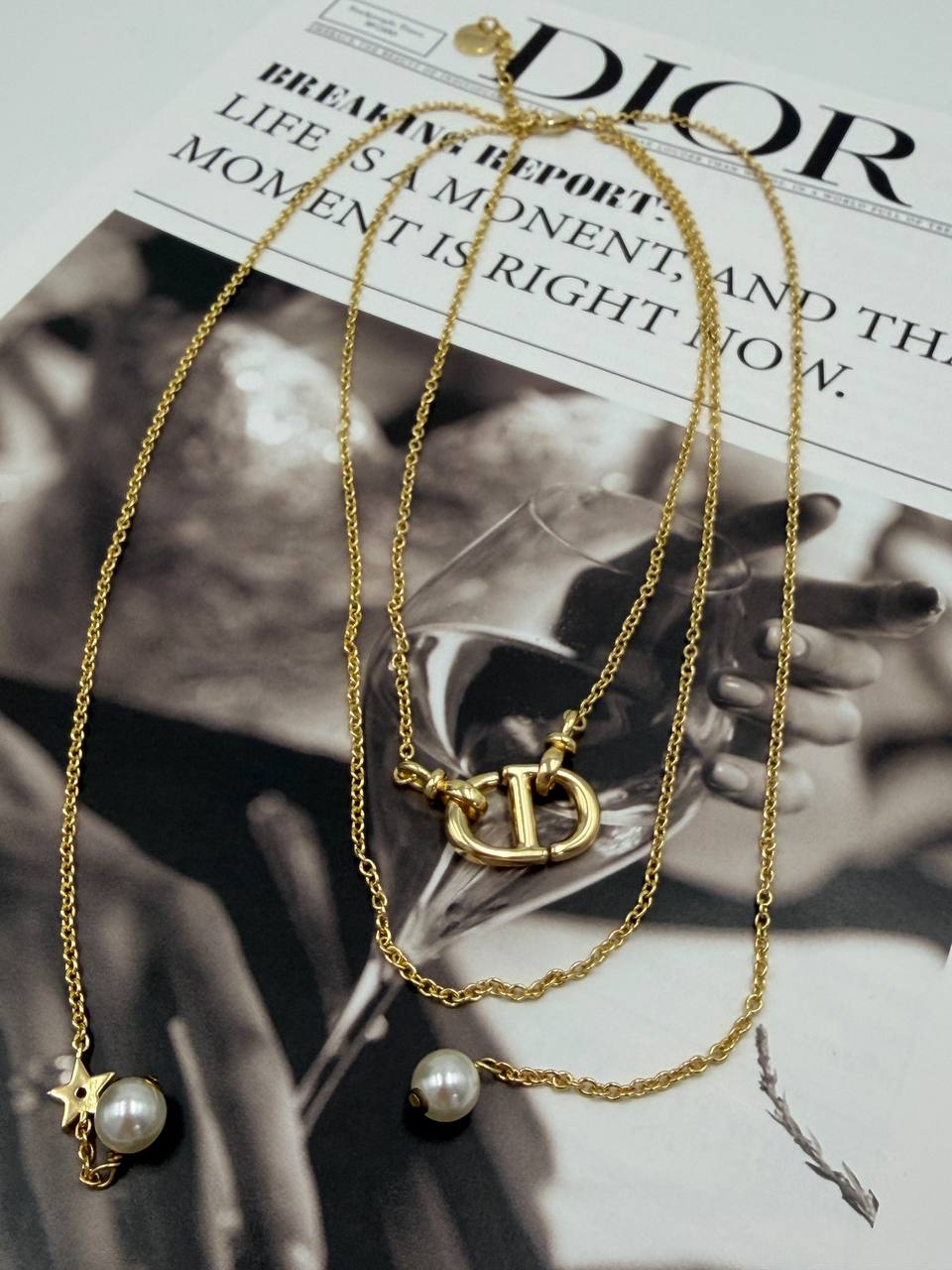Колье цепочка длинная с подвесками style by DIOR