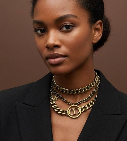 Колье многослойное с подвесками style by DIOR в винтажном стиле