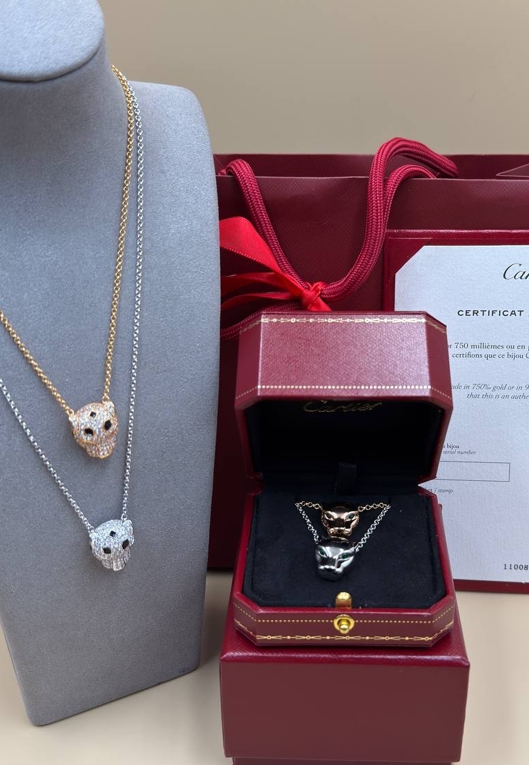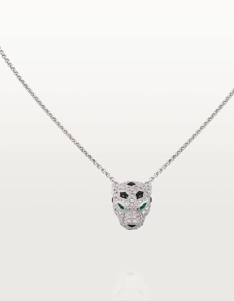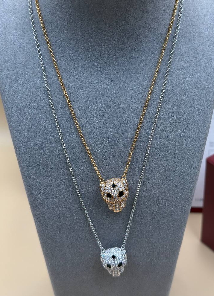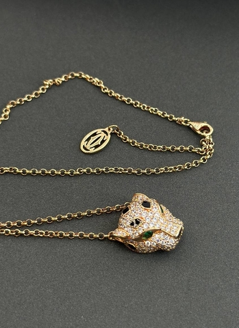 Колье цепочка с подвеской голова ПАНТЕРЫ коллекция PANTHERE в обсыпке