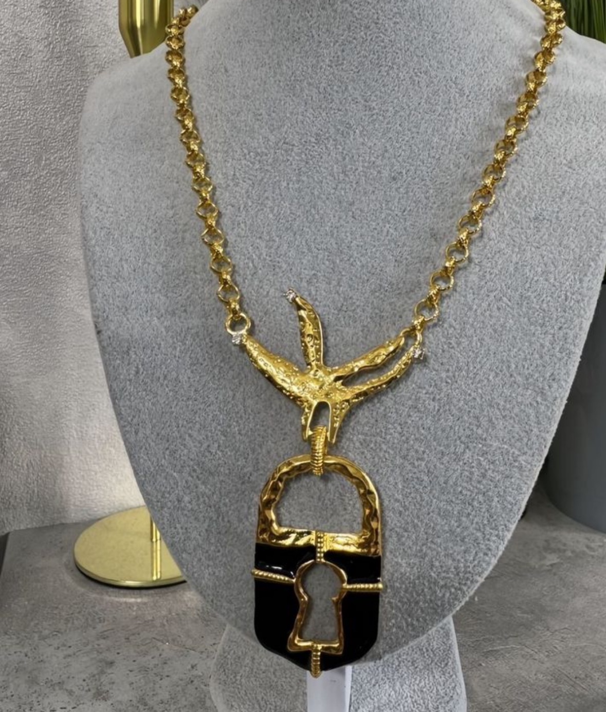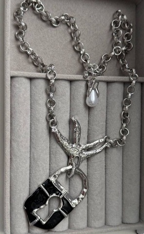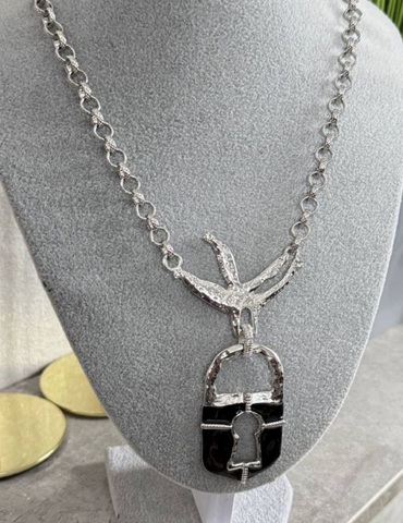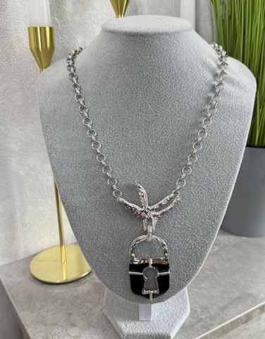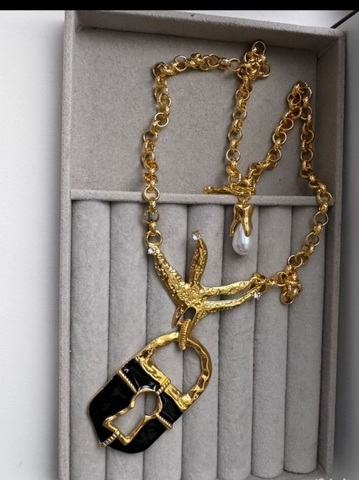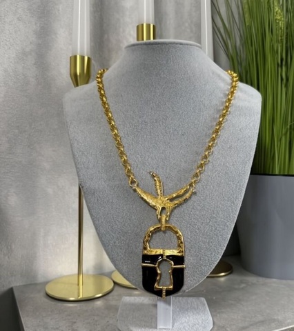 Колье ЗАМОК в клюве птицы в стиле Schiaparelli с черной эмалью