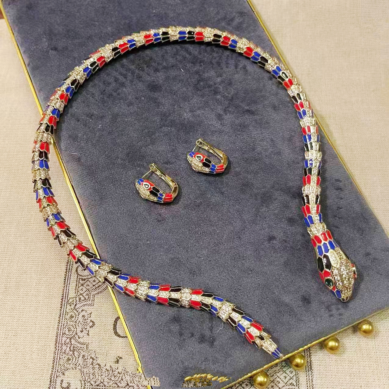 Комплект украшений SERPENTI колье + серьги из стали в розовой позолоте с эмалью