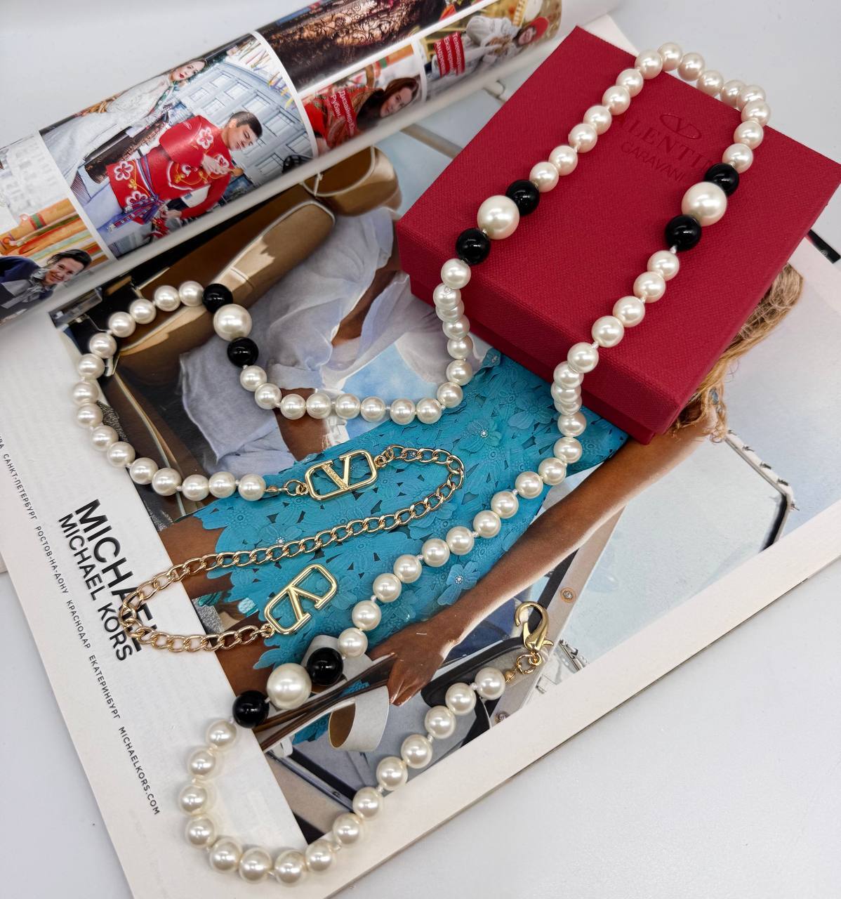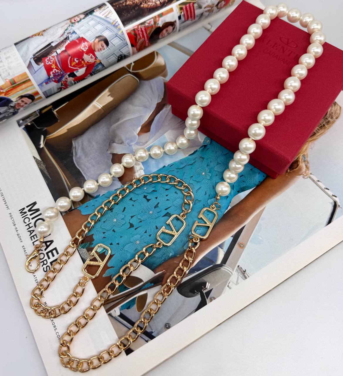 Пояс цепочка с жемчугом в стиле VALENTINO