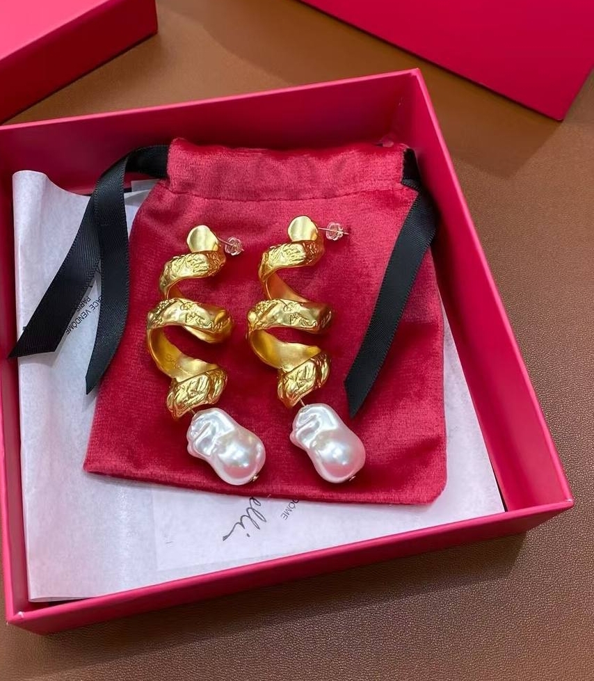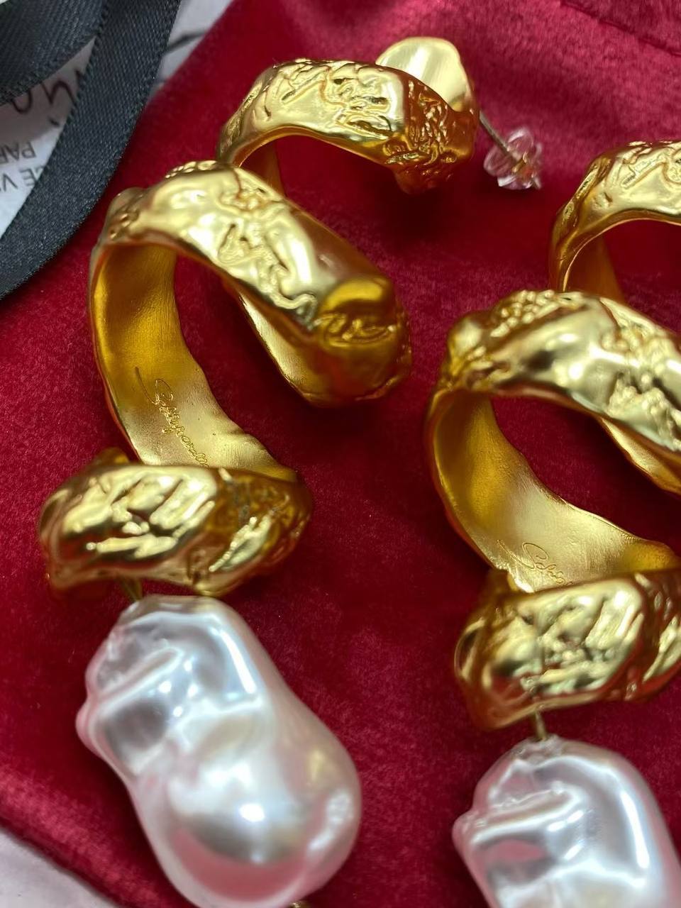 Серьги длинные- спираль с подвеской из барочного жемчуга style by SCHIAPARELLI