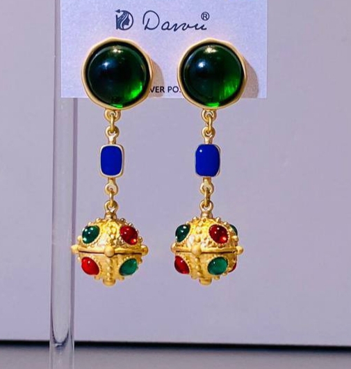 Серьги длинные в винтажном стиле с цветными вставками