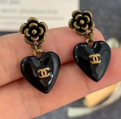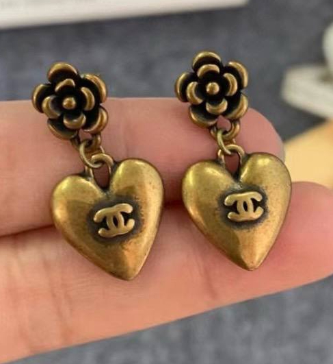 Серьги-пусеты CHANEL с подвеской в форме сердца, винтаж