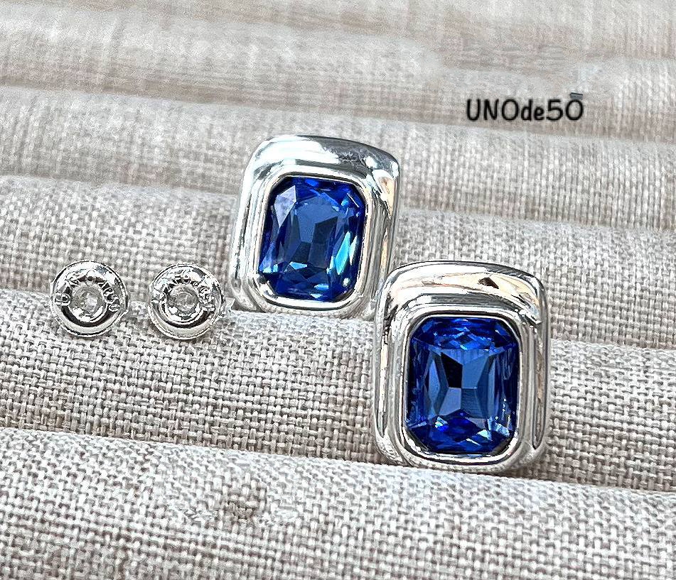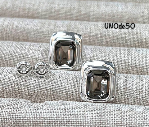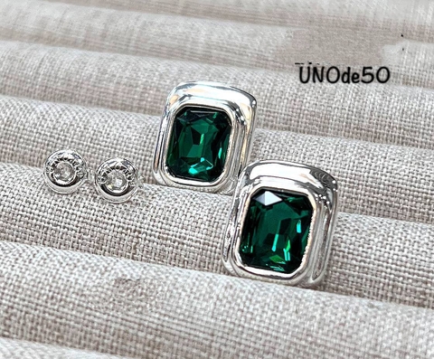 Серьги пусеты UNO de 50 прямоугольные с цветными вставками