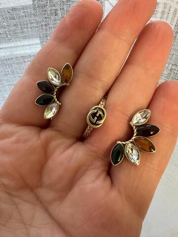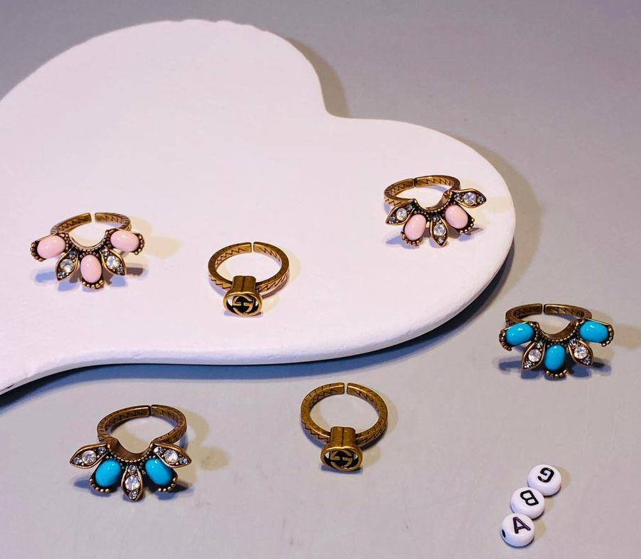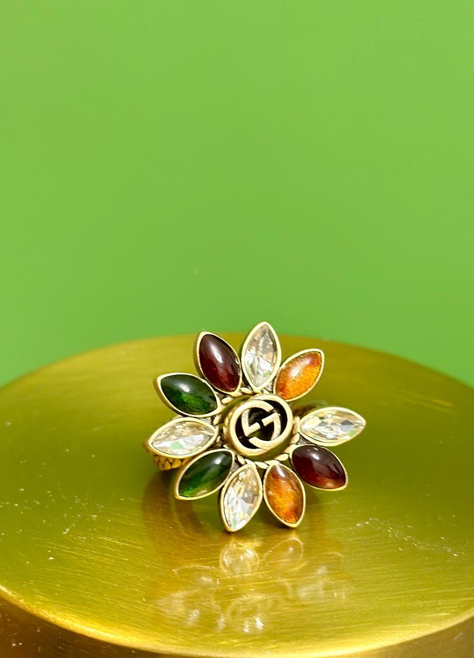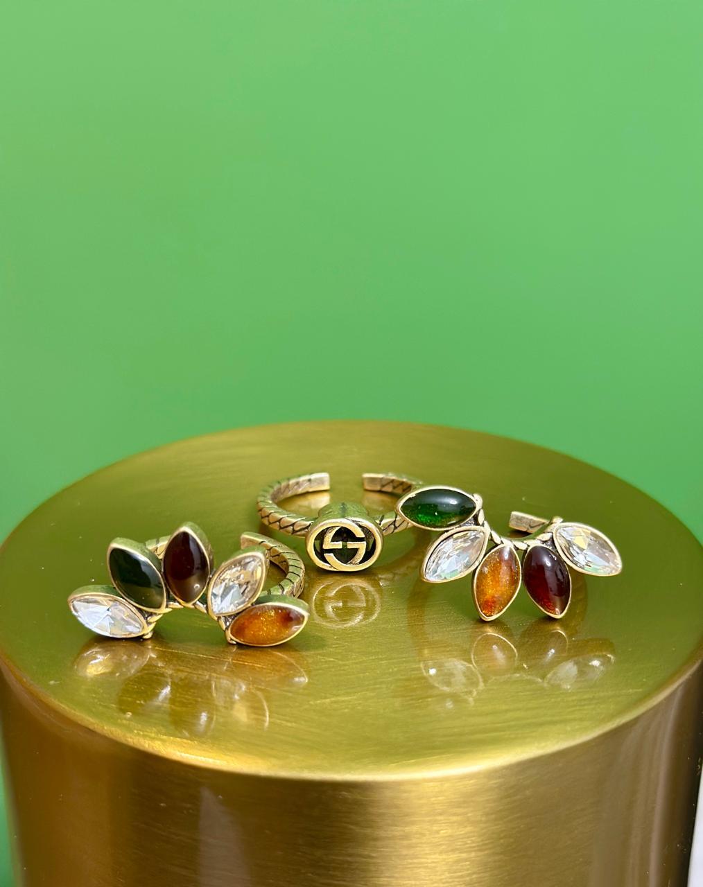 Сет из трех колец РОМАШКА style by GUCCI с цветными вставками (цвет бронза)