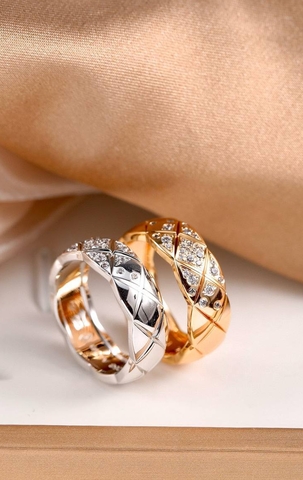 Кольцо широкое с фианитами CHANEL коллекция COCO crush rose/white VGOLD